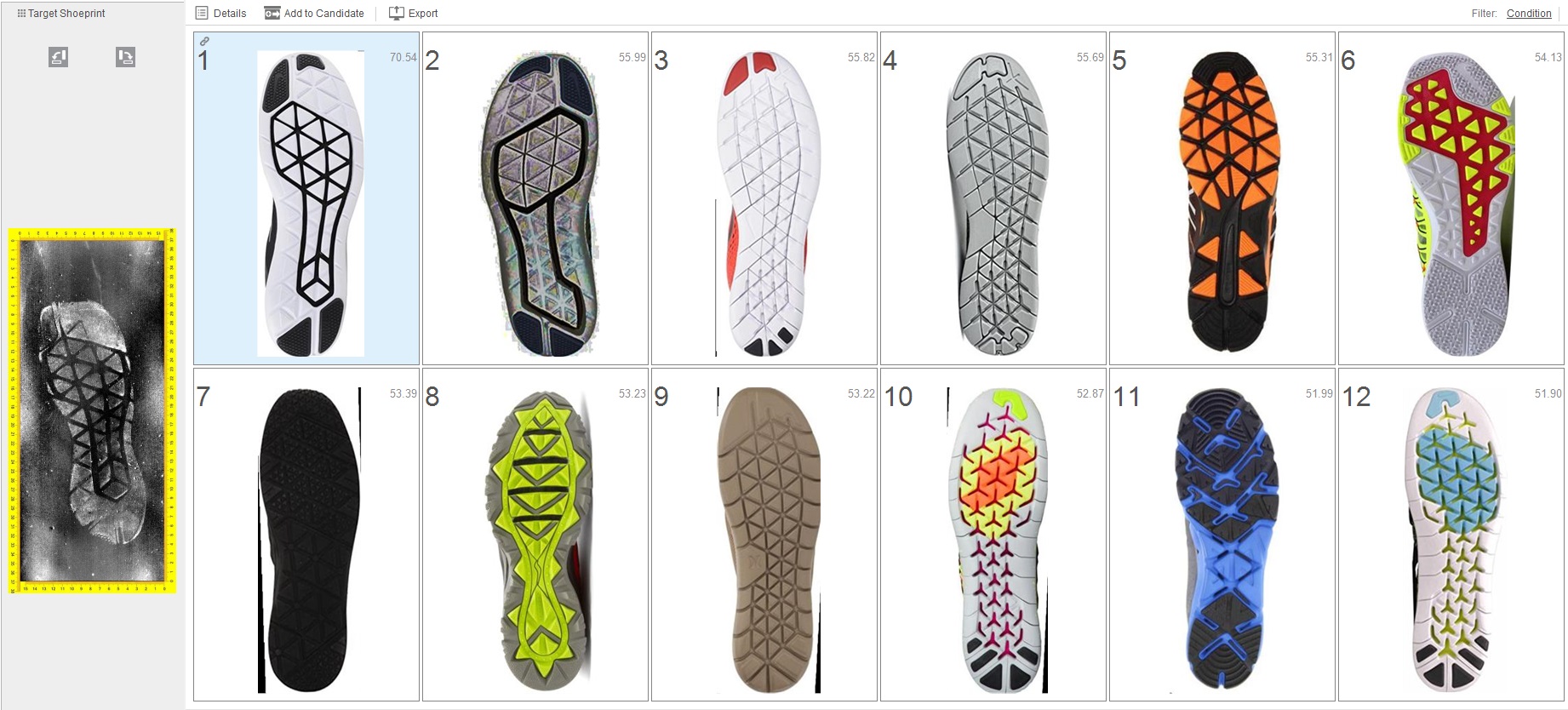 Once the sole pattern image has been binarized and the pattern features are extracted, the comparison can be performed using the pattern features, and the results can be sorted and displayed by similarity. After years of research and development, the algorithm has now been optimized , running in the system that has been used worldwide.