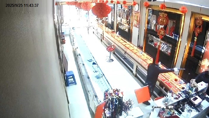 At afternoon on September 25, 2025, the jewelry store was open for business when a man dressed in black and wearing a black hat entered. The clerk was about to greet him as usual, but the man suddenly pulled a homemade single-barreled firearm from his bag and forced the clerk to take the jewelry from the display cases and put it into his shoulder bag. After grabbing several bracelets, bangles, and necklaces from three jewelry trays, he quickly fled the crime scene. The entire robbery took less than 60 seconds. Later, when the clerk checked the inventory, the stolen jewelry was valued at over 1 million RMB.